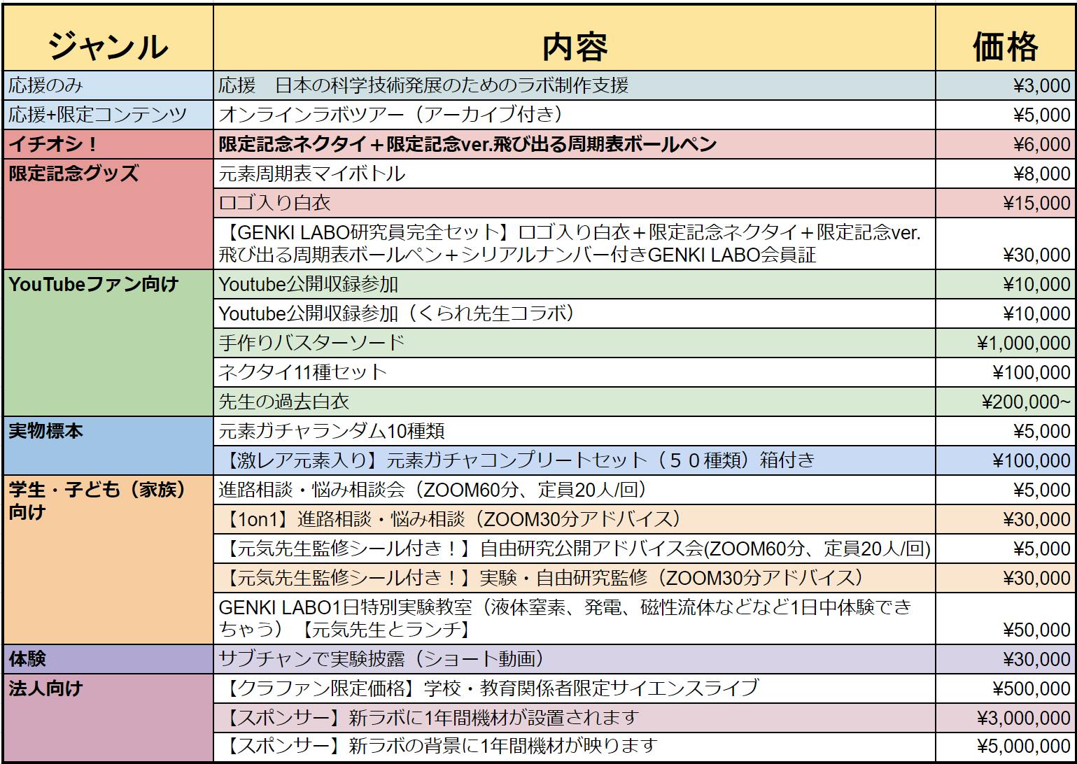 僕のことを全力応援してくれる方には、イチオシセットに、ロゴ入り白衣とGENKI LABO会員証をプラスしました!