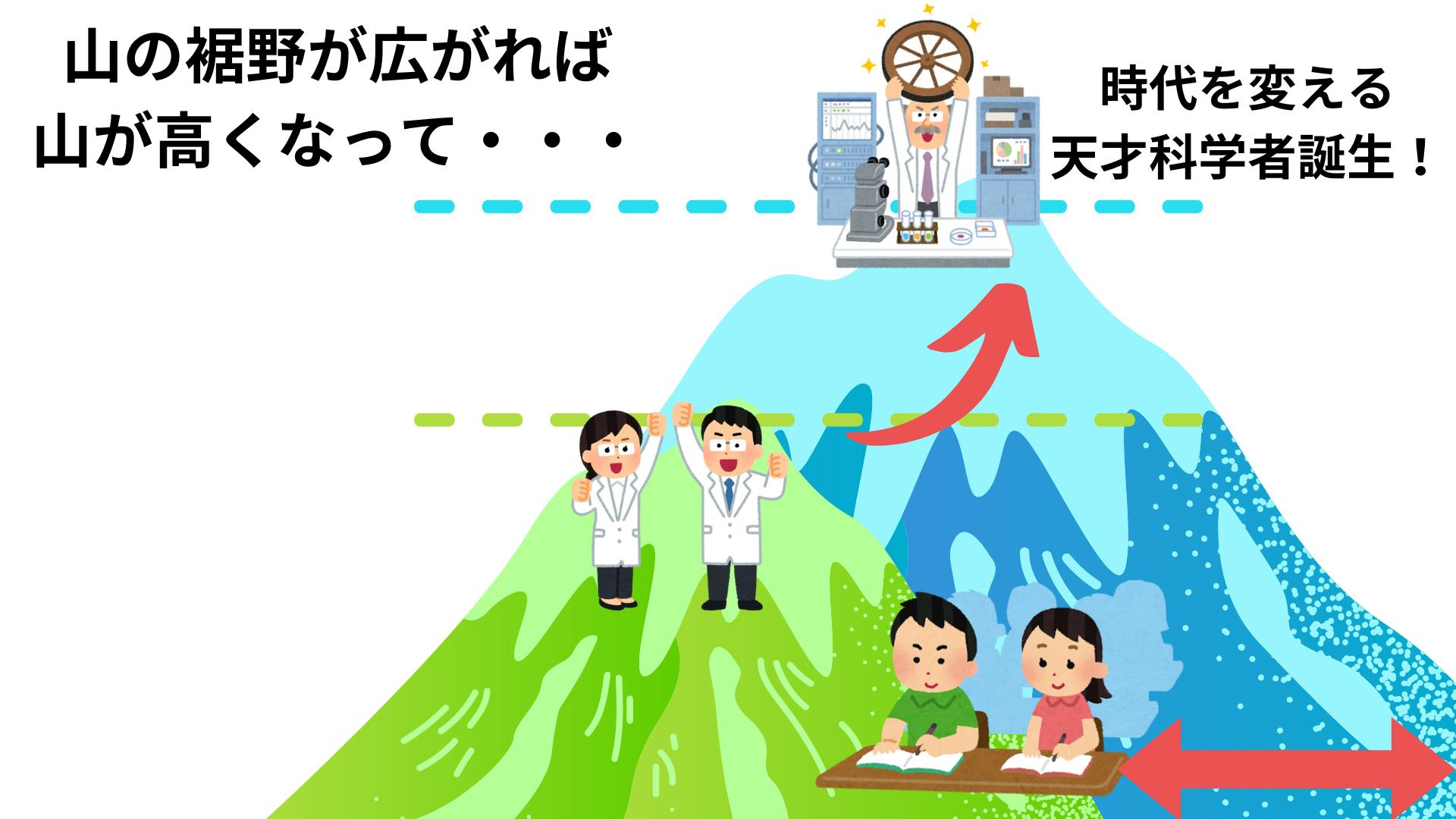 沢山の方が科学に興味を持つことで山の裾野が広がり頂点が上がると思うのです。