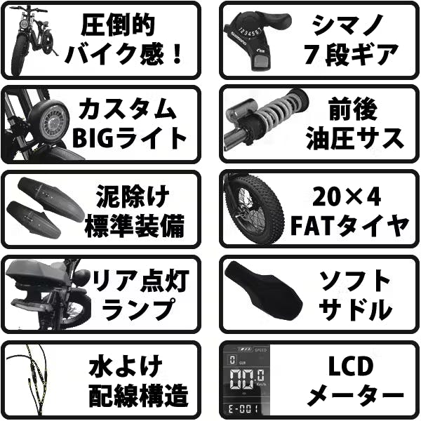 その他の部分(サドル、ペダル、タイヤ、ハンドル、メーター、ブレーキ、配線等)は基本的に全て保証対象外となります。また、通常使用以外での故障も対象外となりますのでご了承くださいませ。