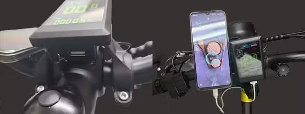【LCDメーターからUSBケーブルを繋ぐと携帯電話等の充電も可能】