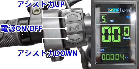 スピードを始め、アシスト力、走行距離、総走行距離、バッテリー残量、現在のアシスト力が一目でわかります。しかもボタン一つでバックライトが点灯するので夜でも安心、安全走行が可能です。