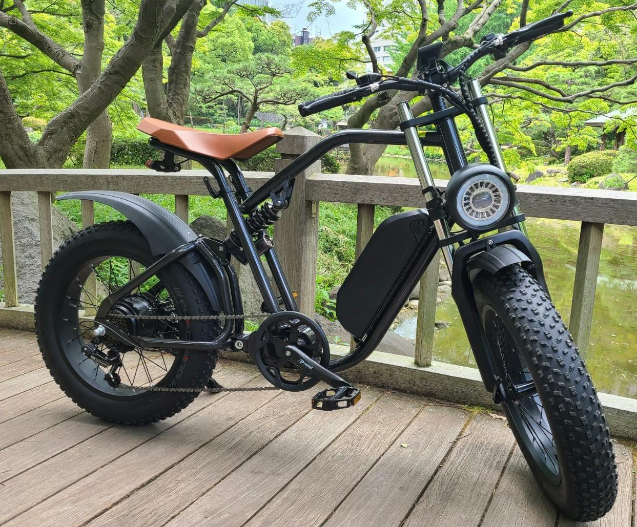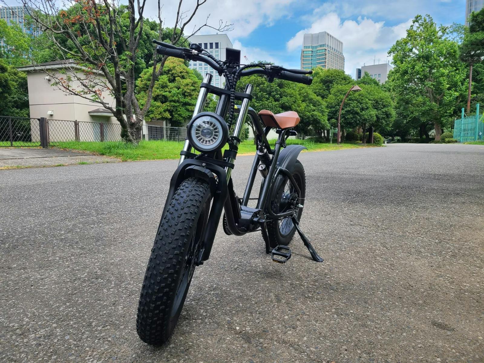 圧倒的なバイク感のフェイスは電動アシスト自転車と思わせない存在感を放ちます。