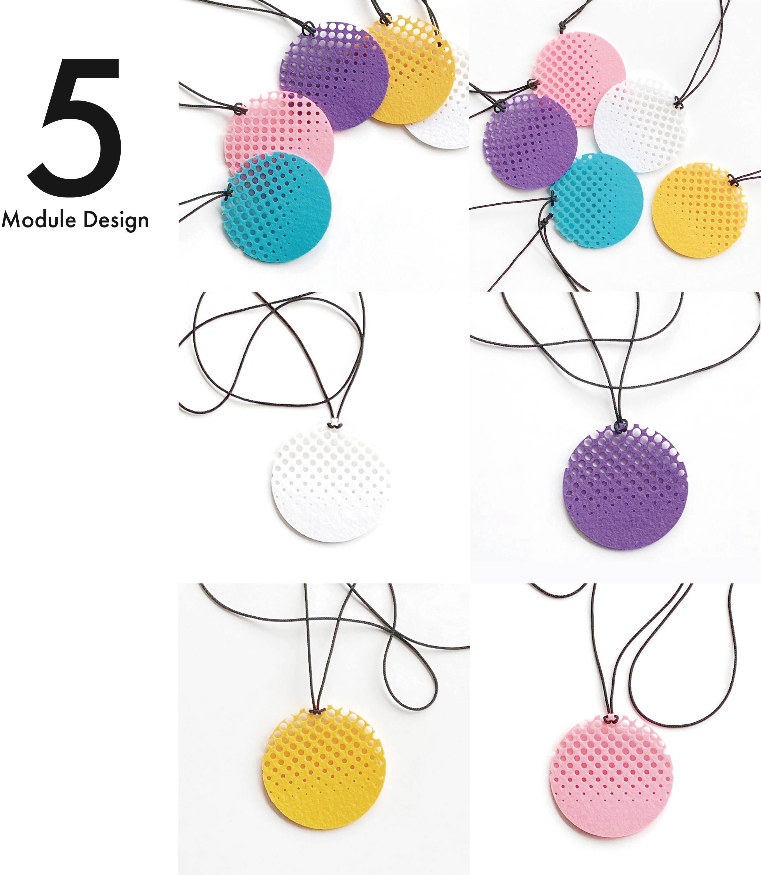 Tシャツなどカジュアルな装いのアクセントにデザインしたペンダント円です。ベーシックな円形状とグラデーションのパターンはシンプルでさりげなく楽しむことができます。ウォッシャブルフェルトのペンダントは洗濯可能で清潔を保つことができ、軽いフェルト素材は着けたことによるストレスを感じません。5色の発色の良いカラーはプレゼントにもおすすめです。