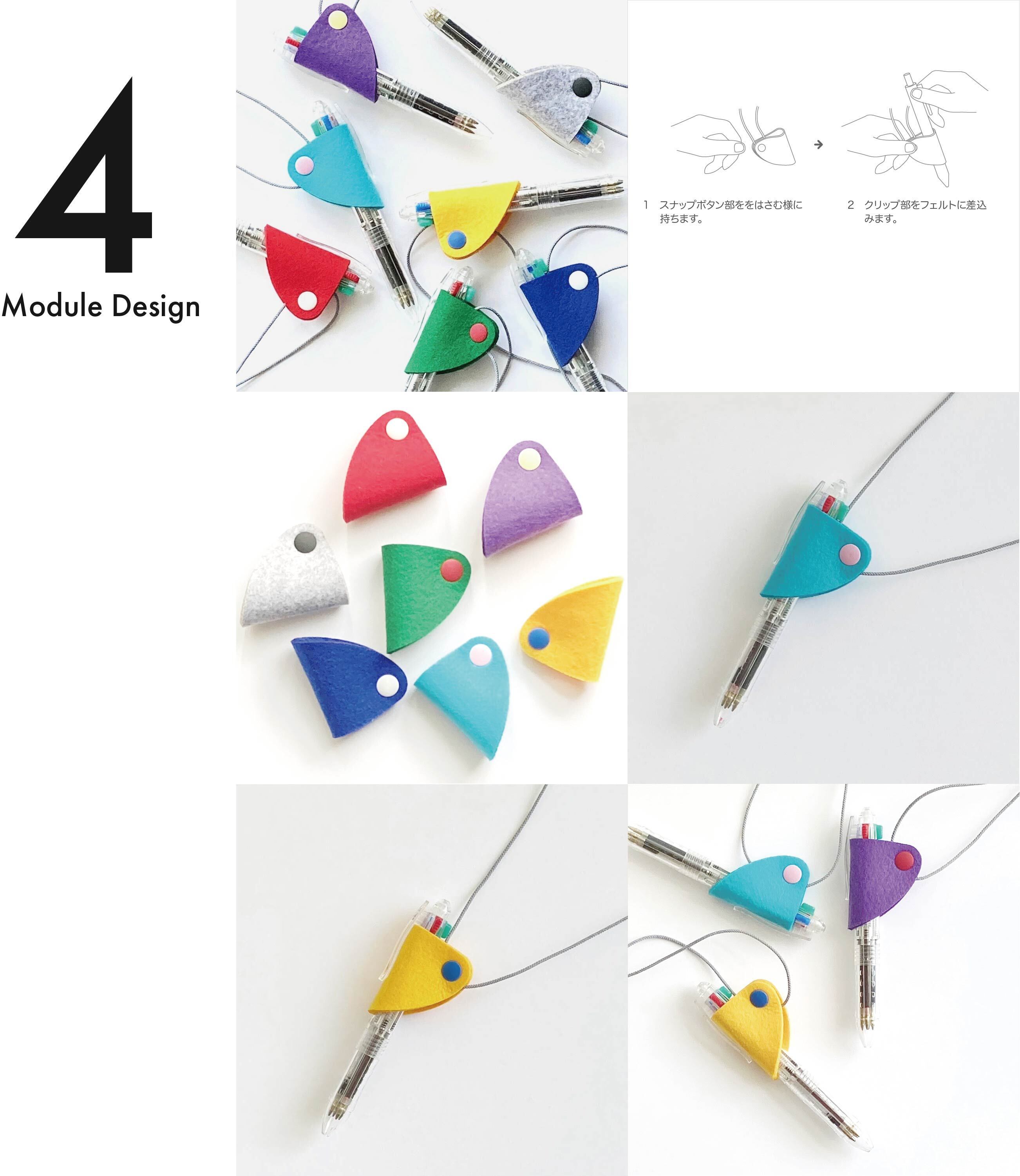 フェルトの物理的特性としてふわっとした「軽さ」が上げられます。この特徴はペンホルダー、眼鏡ケース、ペンダントなど首さげタイプのアイテムを実現し,ストレスフリーの快適さも得ることができました。思わず触ってみたくなる優しくソフトな素材感とビビットな発色の良さは「元気になる」楽しくわくわく感をプラスします。