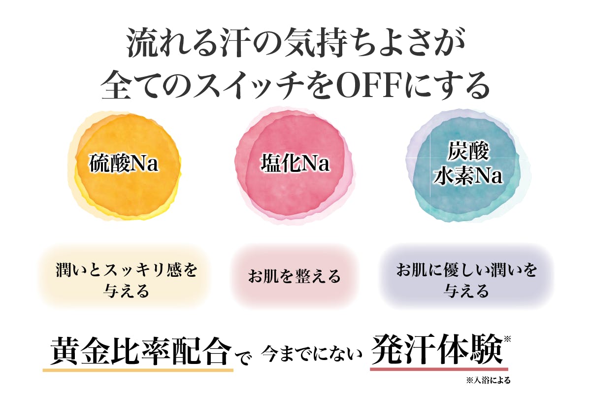 3つの温泉成分を黄金比配合してもらい、今までで一番汗を実感することができました。