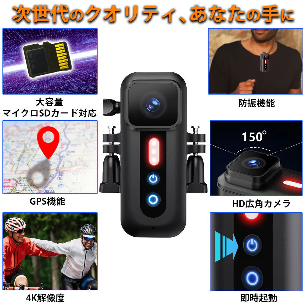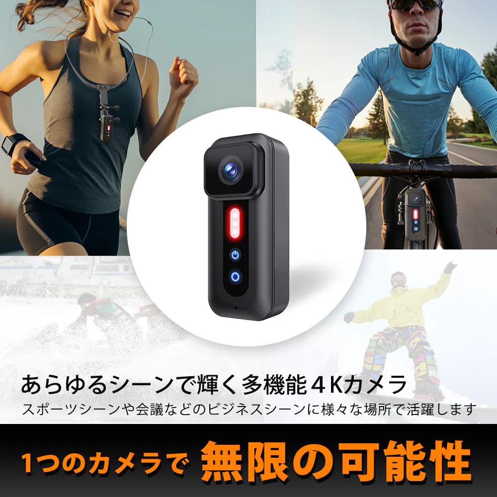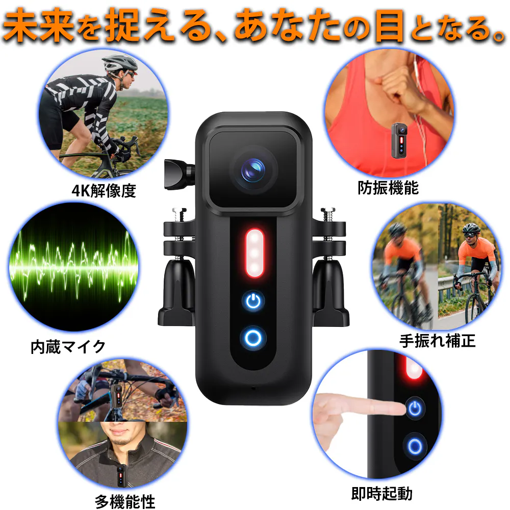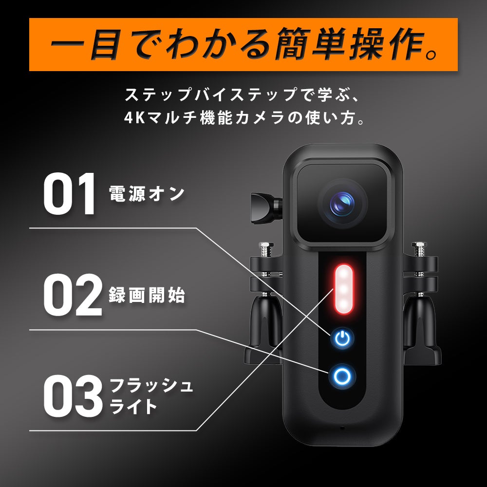あなたは一つのカメラで、どれだけのことができると思いますか?私たちの4Kマルチ機能カメラはこの一台で、ボディカメラ、自転車レコーダー、さらにはもしもの時のドライブレコーダーとしても使用可能。様々なシチュエーションで活躍します。