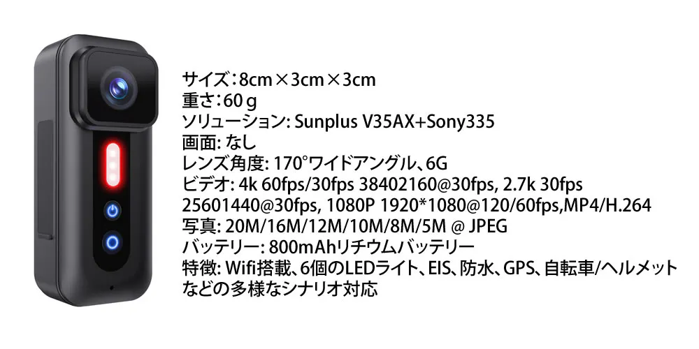 ボディカメラ、自転車レコーダー、ドライブレコーダーなど、複数の用途に適応