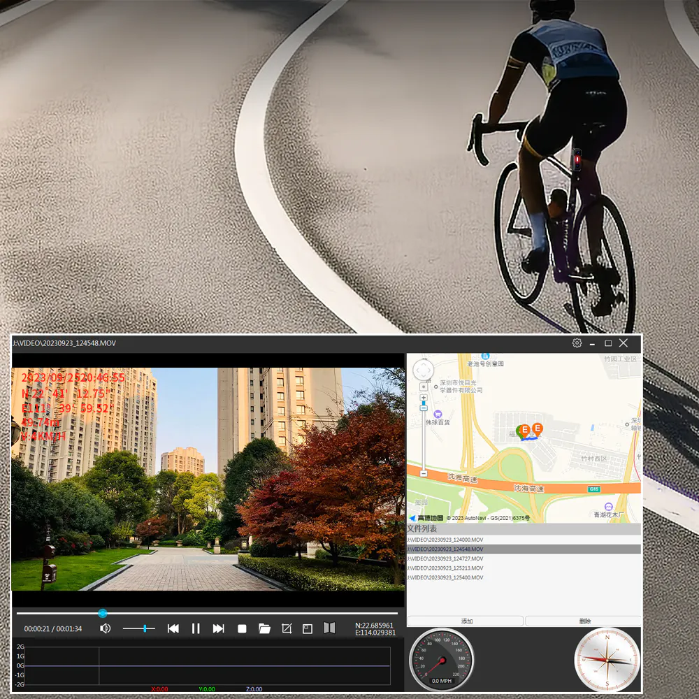 電源ボタンとビデオボタンを同時に押してGPSをオンにします。GPSがオンになると、ビデオボタンが点灯します。GPSのダイヤル後、電源ボタンとビデオボタンを同時に押してGPSをオフにします。GPSがオフになると、ビデオキーライトが消えます。GPSがオンになり、衛星と接続すると、ビデオのウォーターマークには、経度と緯度、高度、速度が含まれます。GPSがオンになっても衛星の検索が行われない場合、ビデオのウォーターマークにはNO GPS SIGNALが表示されます。PCプレーヤーやアプリでビデオを再生すると、ビデオの撮影トラックを表示できます。