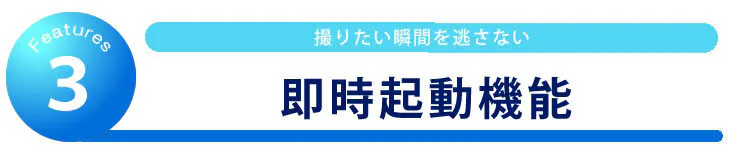 カメラをオンですぐに撮影開始、重要な瞬間を逃さない