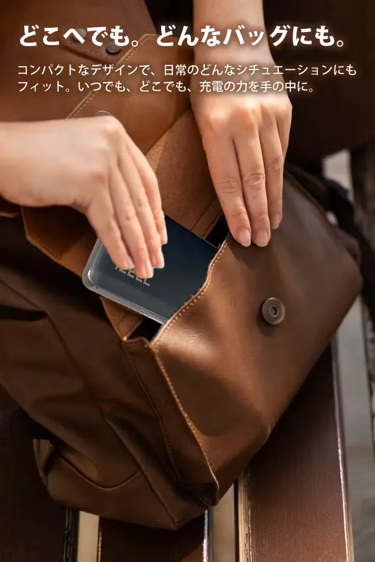 手のひらに収まるコンパクトなサイズで、あなたのライフスタイルにしっかりとフィット。ポケットや小さなバッグにもスムーズに収まります。大きなパワーを持ちながらも、その存在を気にせず、自由に移動できる。外出時、旅行時、毎日の通勤・通学時、どんなシチュエーションでもあなたのパートナーとして活躍します。