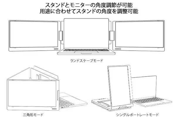 デュアルスクリーン: 14インチ×2のデュアルスクリーンを提供し、3つのモニターで同時に複数のタスクを効率的に行うことが可能。