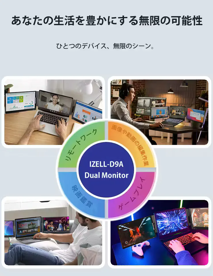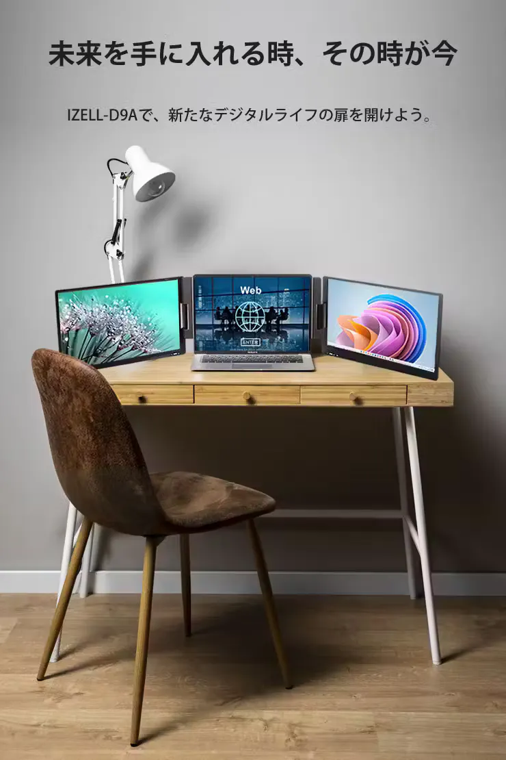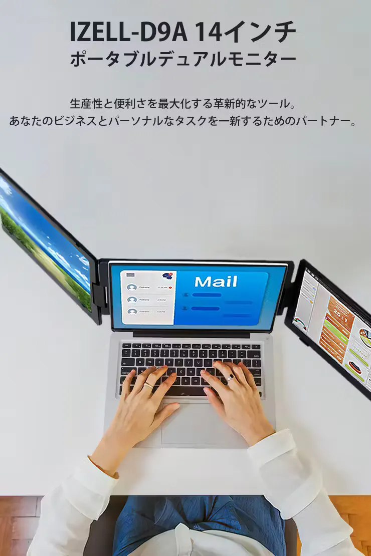 私たちは、忙しい現代人の能力を最大限に引き出すことを目指し、最新の技術を駆使してこのユニークなデバイス、14インチ ポータブルデュアルモニター【IZELL-D9A】のプロジェクトをスタートしました。