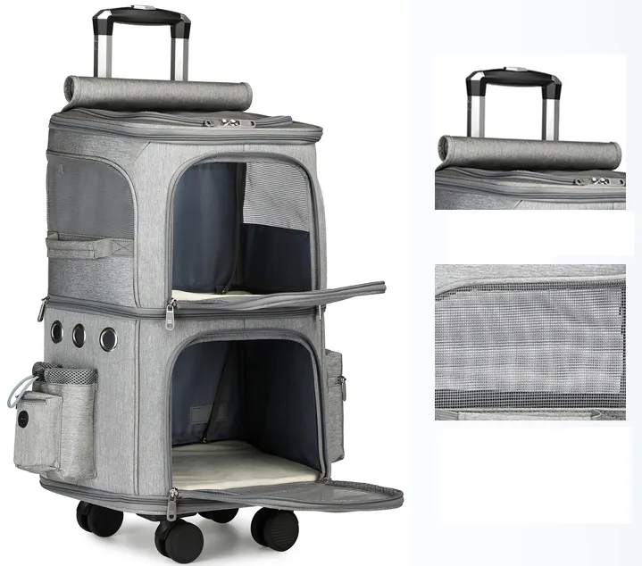 安定した歩行:2階建てのデザインで、ネコちゃんたちや小型ワンちゃんたちを同時に快適に移動できます。