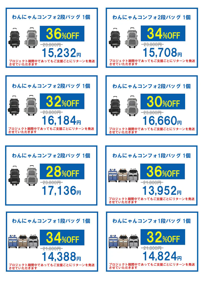 2024/08/17 14:30このたびはご支援とお気に入りとご興味をいただきましてありがとうございます。プロジェクト期間が残り8日を切りました。Confoバッグにご関心をお持ちの方は、プロジェクトが過ぎてしまうとこのご支援額でご支援いただけなくなりますので、この機会をお見逃しなくこのプロジェクトが終了する前にご支援を賜りましたら幸いです。よろしくお願い申し上げます。 もっと見る