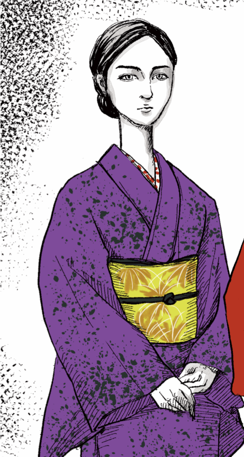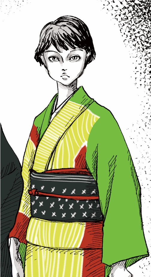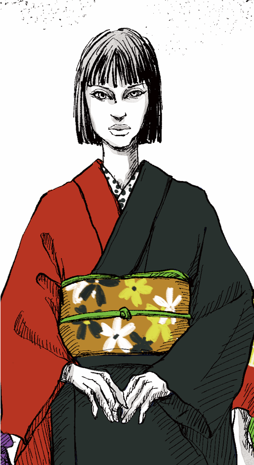 葵那那とは… 9歳の時に親が⼀家⼼中を図るが、⻑⼥琴⼦によって命を救われる。原因となった詐欺師への復讐を琴⼦と共に誓い、呪術の修⾏に励む。複数の⼥の怨念が絡み合った精霊を守護神とし、暴⼒的な呪⼒を発揮する。三姉妹の中で最も社交性があるが、同時に、いつも怒っているのではないか、というような怒りを内に秘めた雰囲気を放っている。琴⼦を慕い、その呪⼒にも敬意を持つ。妹の阿⾒に対しては、そのあまりの⾃由さに腹⽴たしく感じることがあり、よく注意したり叱ったりしている。