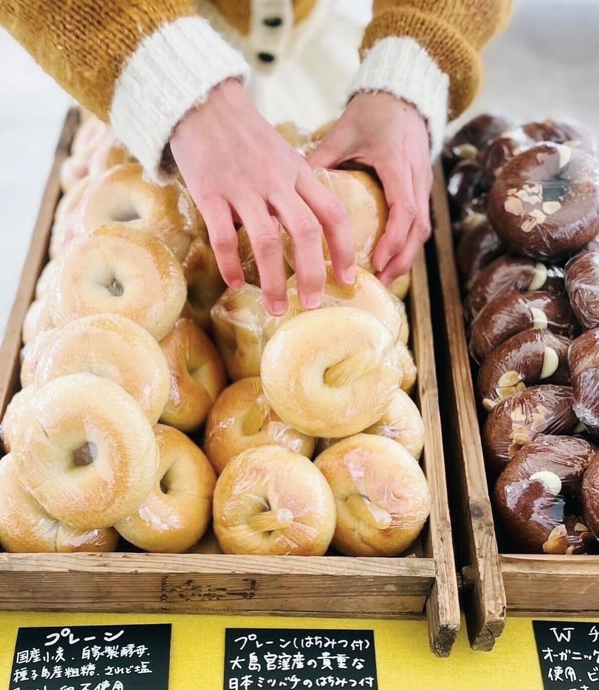 自分の好きな事をやりながら人生を楽しみたいという思いから開業し、生産者さんに食材を提供していただきベーグルを作る事が出来ています。