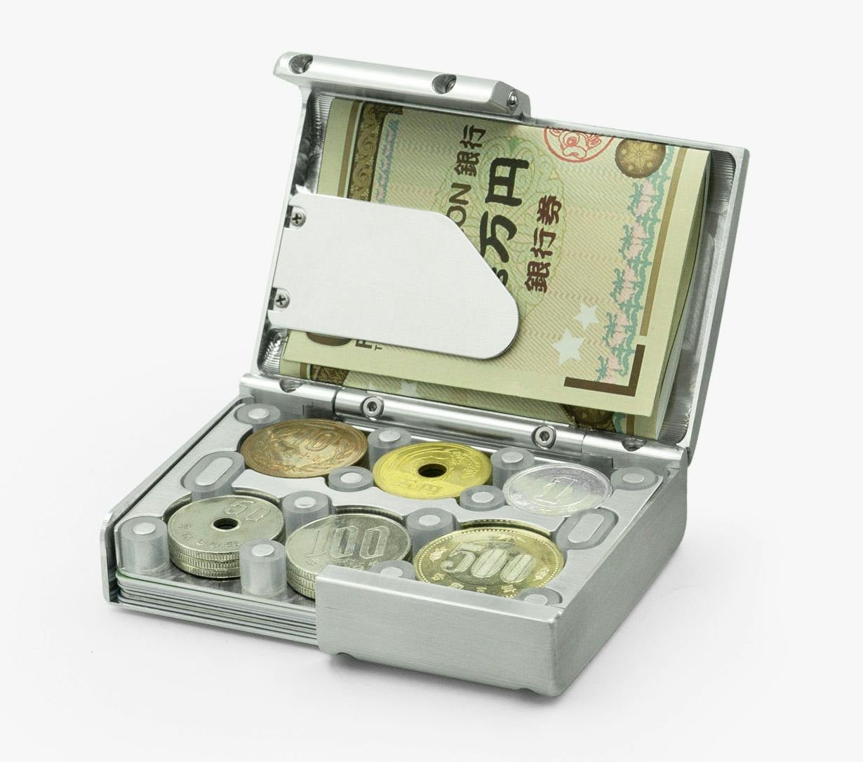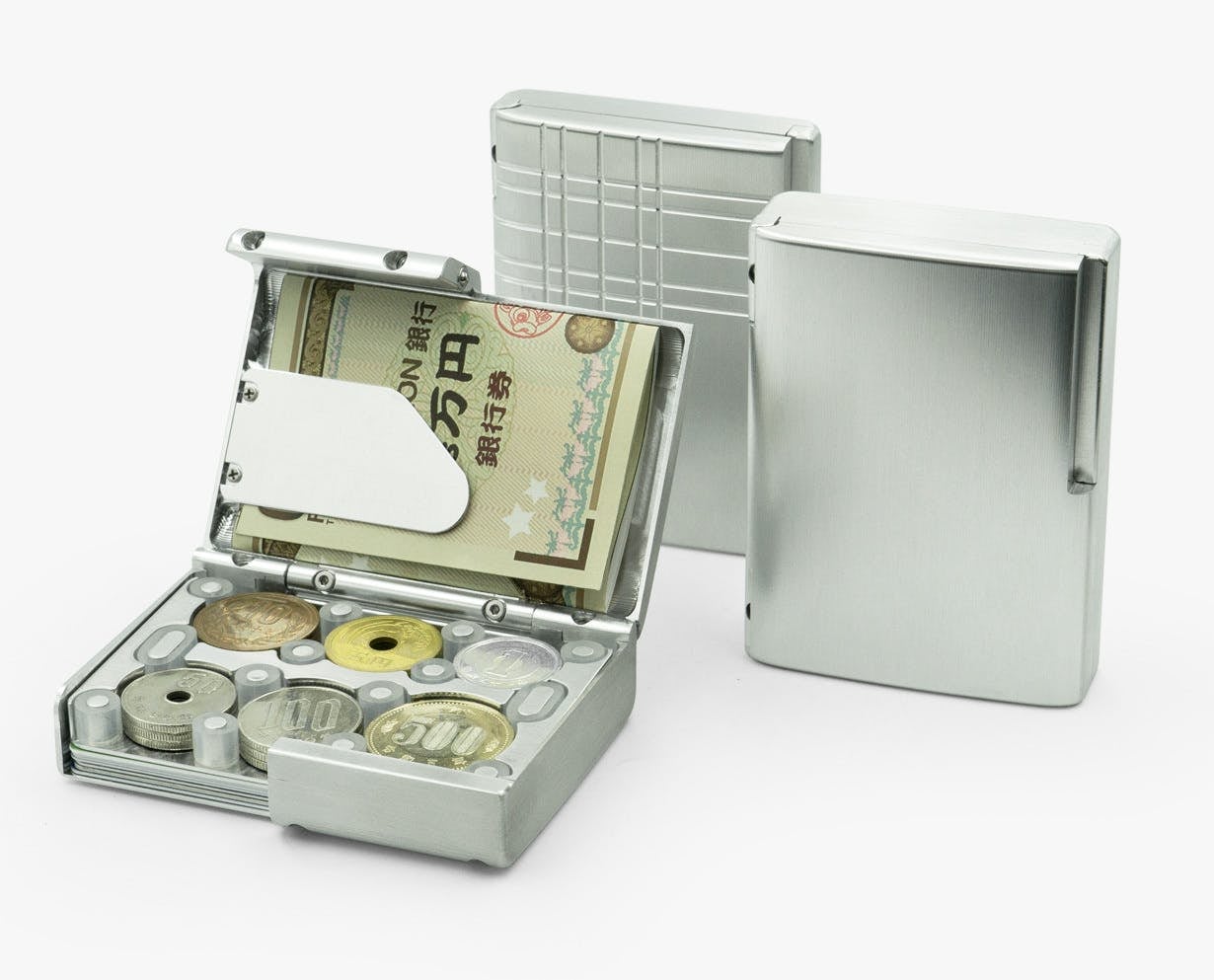 マネークリップ付きもありますが、個別に小銭入れなどを持つ必要があります。