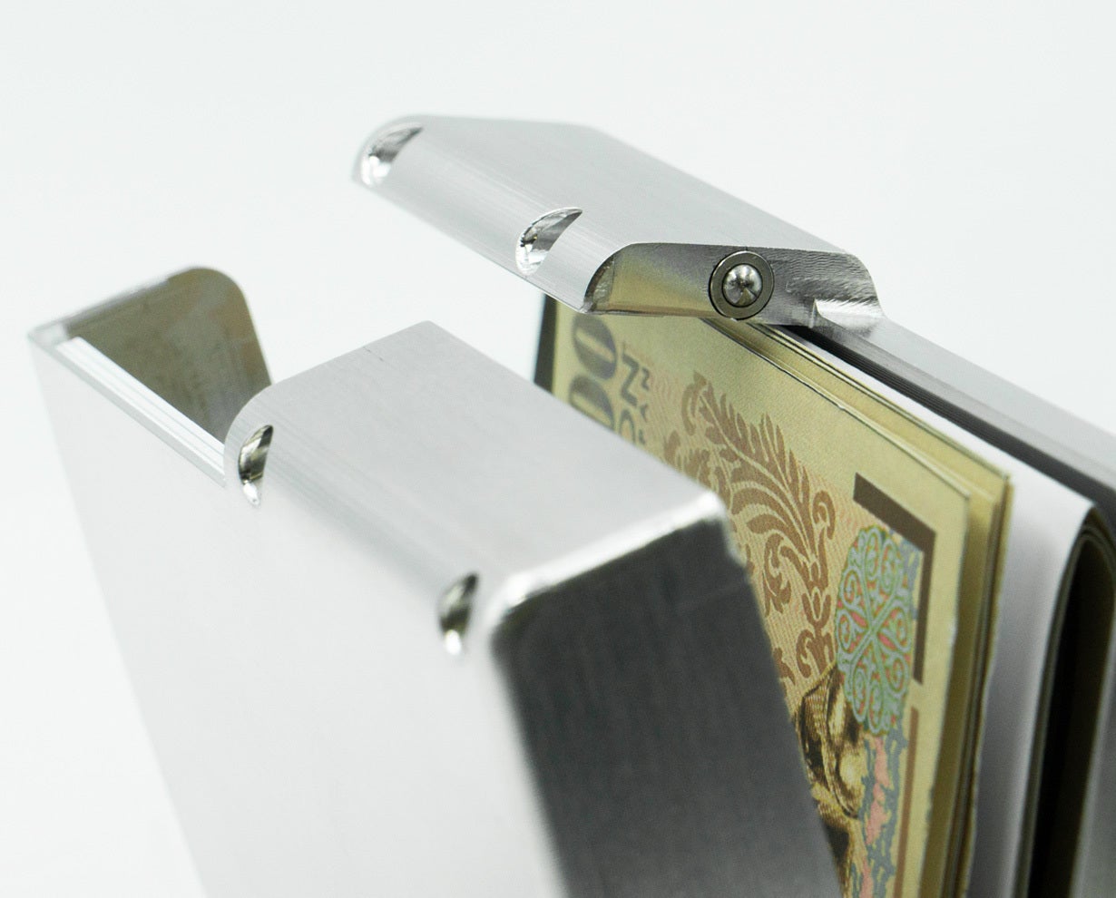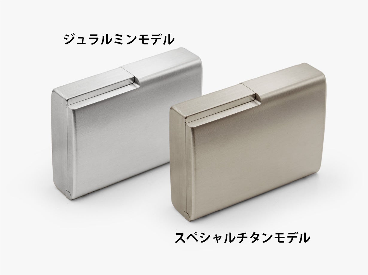 市場のメタル製カードケースは、金属板とゴムでカードを挟んだり、レバーで押し出すものが主流です。