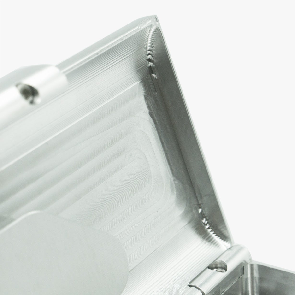 今回のメタルウォレットBOXYミニは、切削加工痕(削り出し刃物の跡)を残して三次元切削加工品として商品化しています。