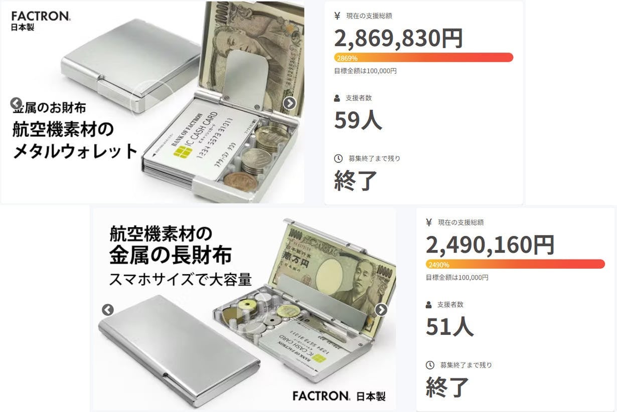 2023年5月二つ折りタイプの『メタルウォレットBoxy』、2024年4月長財布タイプの『メタルウォレットBoxyロング』のプロジェクトでは沢山のご支援をいただきました。本当に感謝申し上げます。