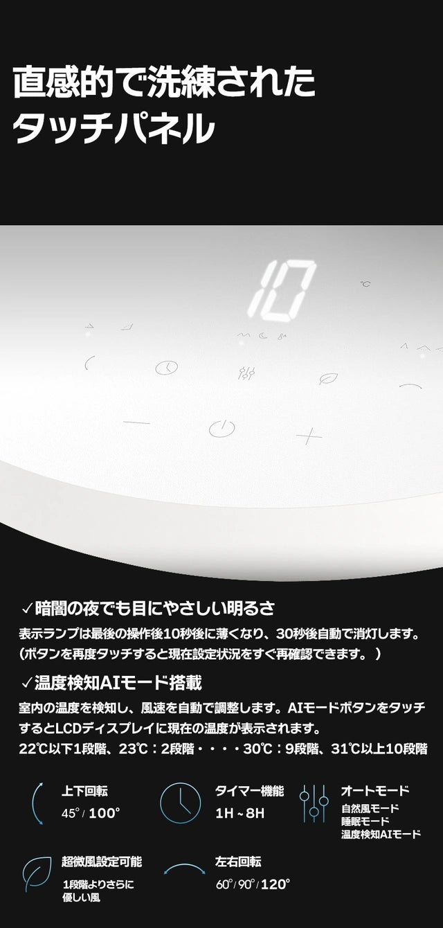 aioLABでは既存の扇風機とは違い【細かい部分での改善】【よりパワフルな性能】【多様な便利機能】【優れたデザイン性】を強化して差別化された製品開発に集中しました。