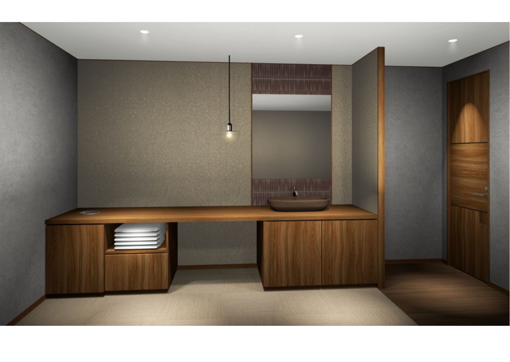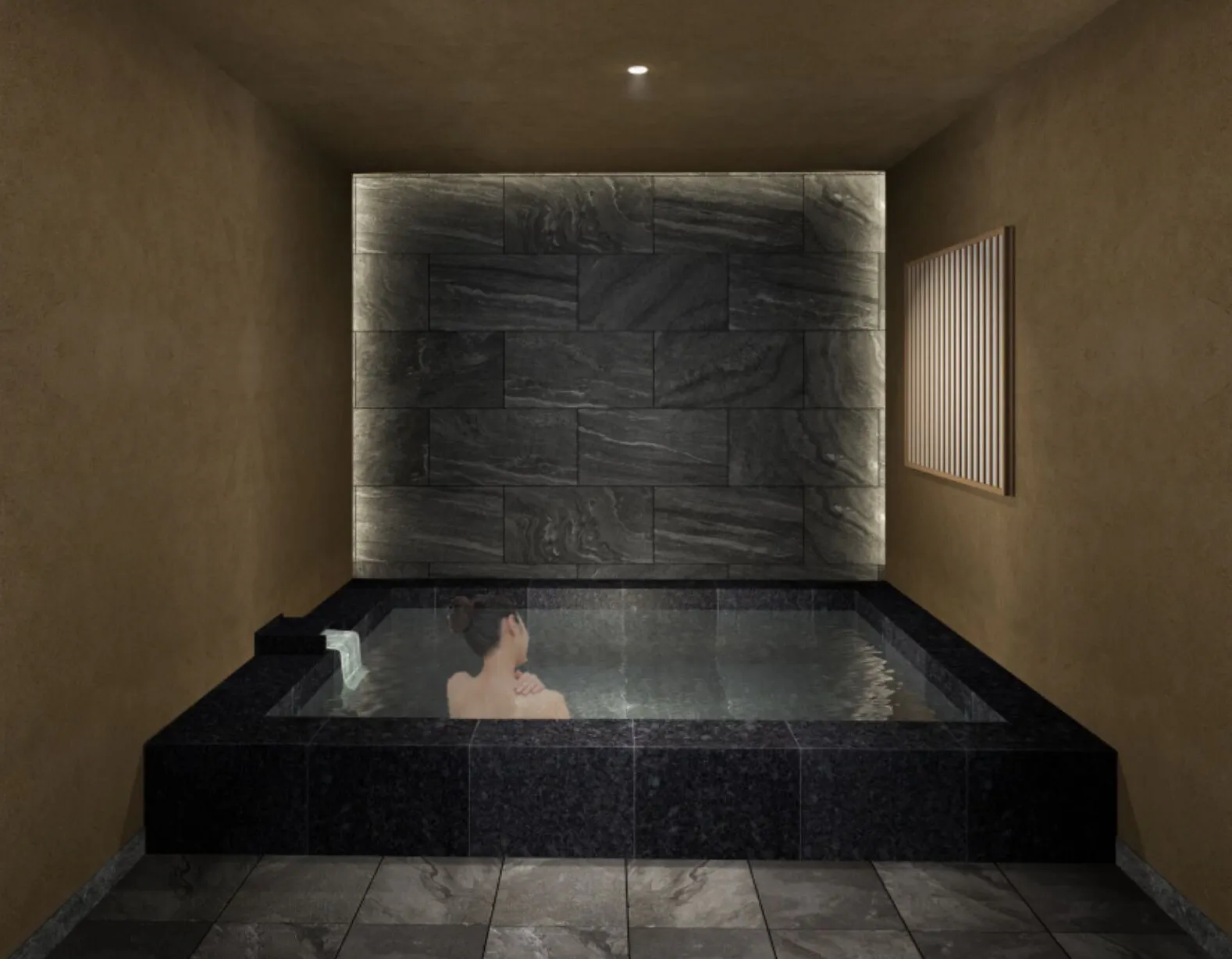▼浴室・・・香住の雄大な自然の中でも「大地」をイメージしたシンプルで落ち着いた空間。