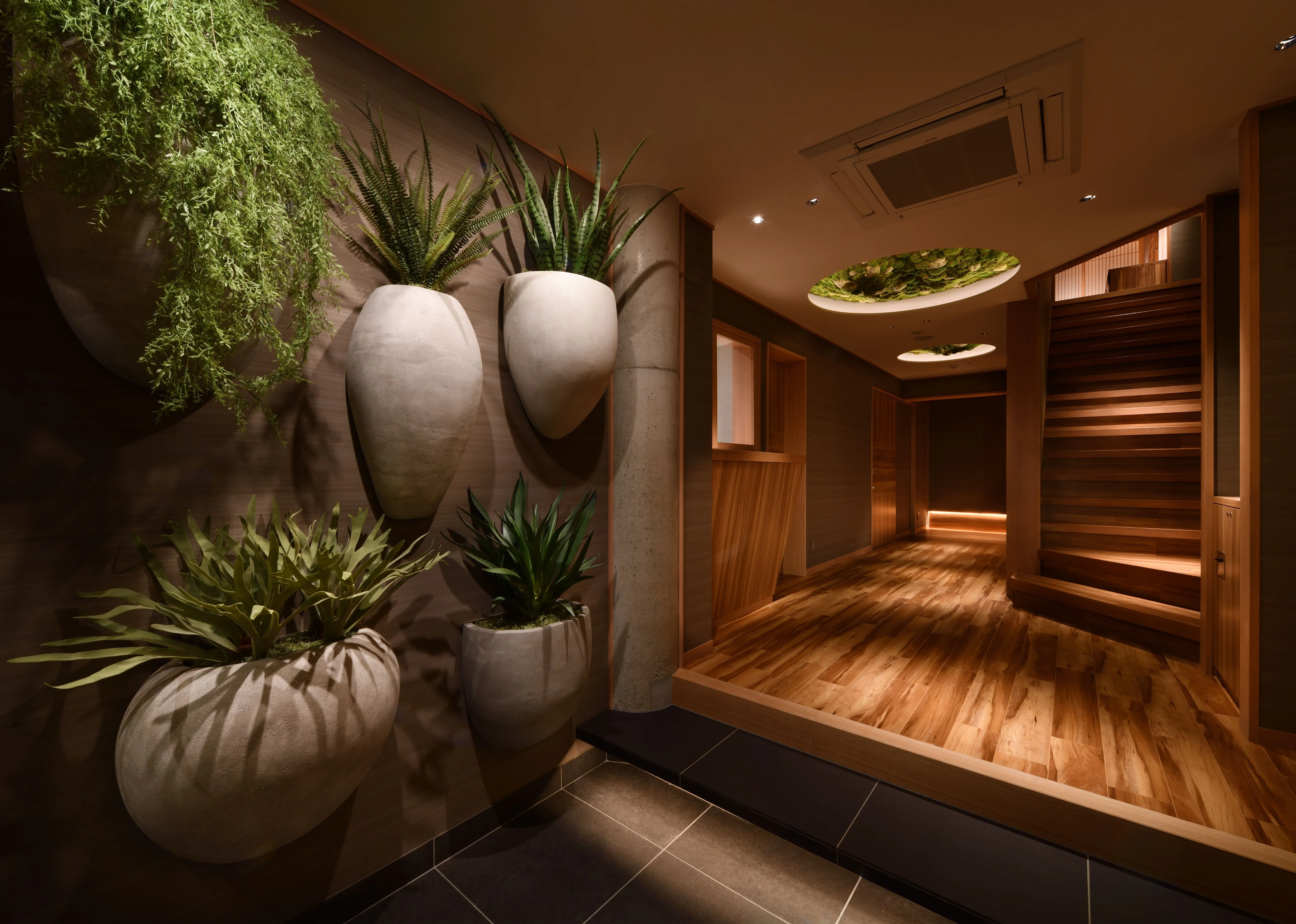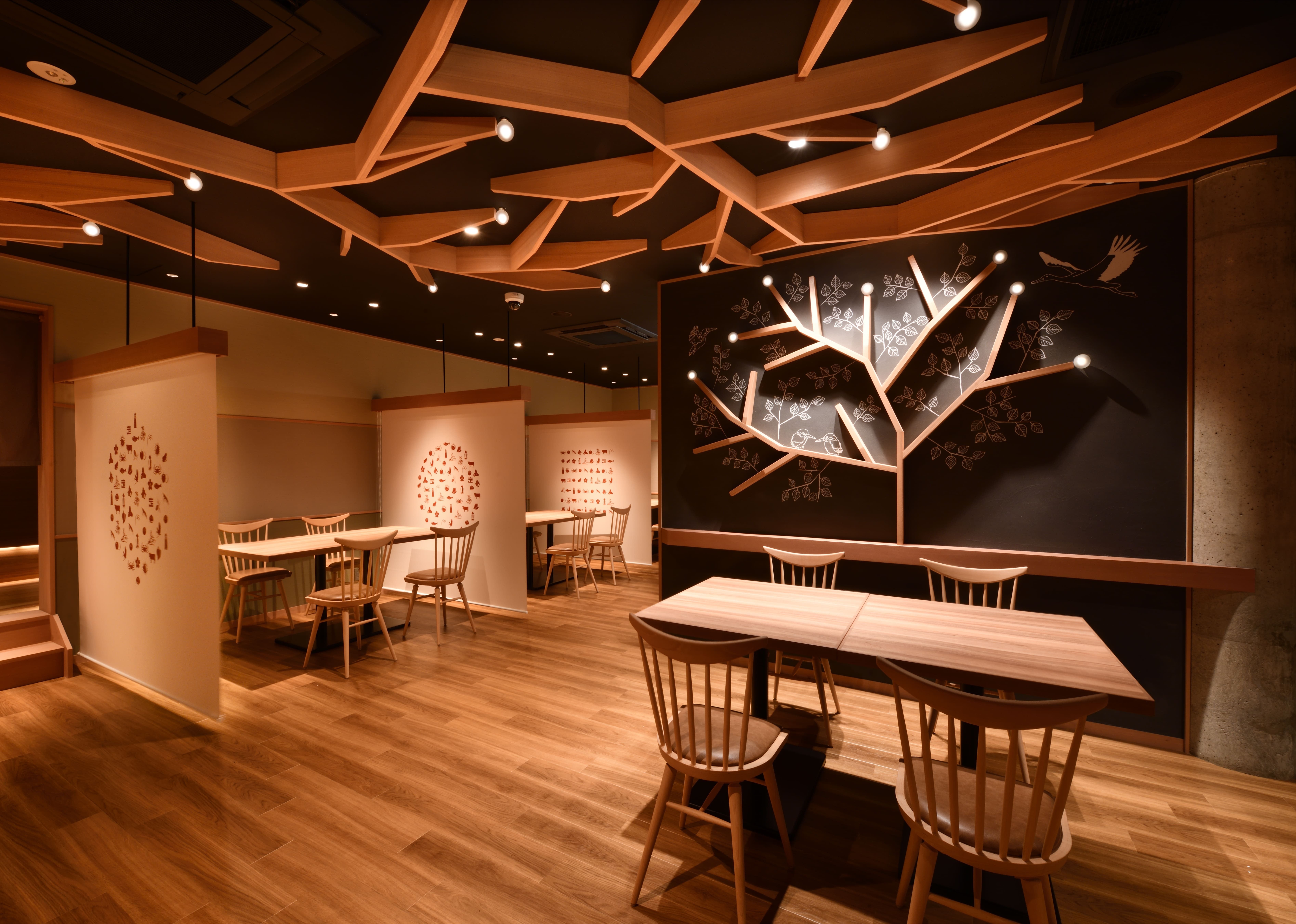 天然香住温泉を源泉とし、モダンな和の空間の中に香住の自然の山や木をイメージしたデザインをとり入れています。銀引きの柔らかい光に目で癒され、ミストサウナで体全体を包まれるような温かさでリラックス、リフレッシュしていただけます。