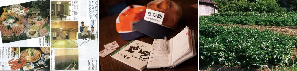 母智枝と共に、電気も通ってない田んぼの真ん中に、一軒(現在地)、民宿「定助」を開業するに至りました。宿を営みながら、今までどおり米、梨、野菜作りを続け、魚介類は港へ出向き仲買人を通して買い付けに行き、お客様に新鮮なお食事をご提供して参りました。又、有志と共に香住温泉を掘削、客室も当初から増築を重ね、現在に至る道筋を作ってくれました。