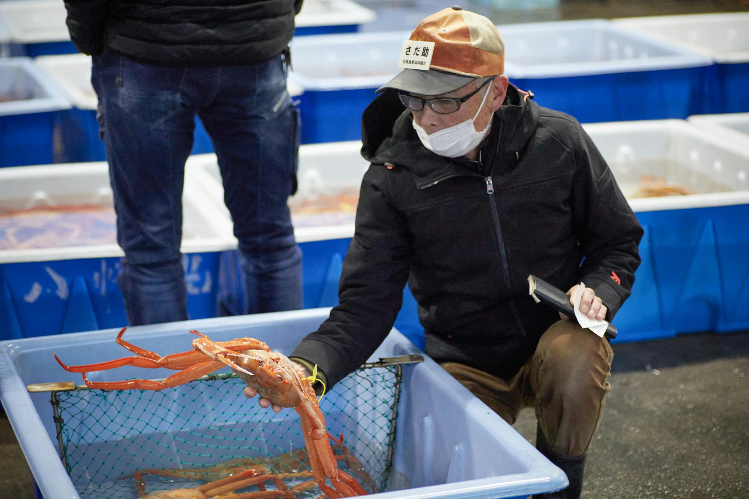 ■ほぼ毎朝、香住漁港にて朝競りに立つ、仲買人の主人