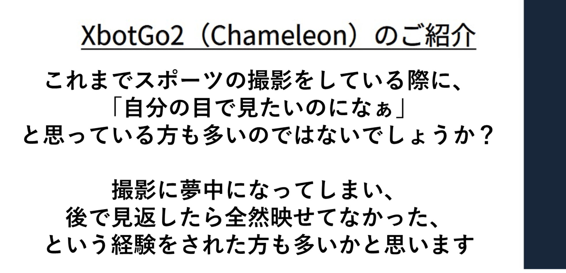 ネクストゴールに向けて皆様にXbotGo2の魅力をお届けできればと存じます。