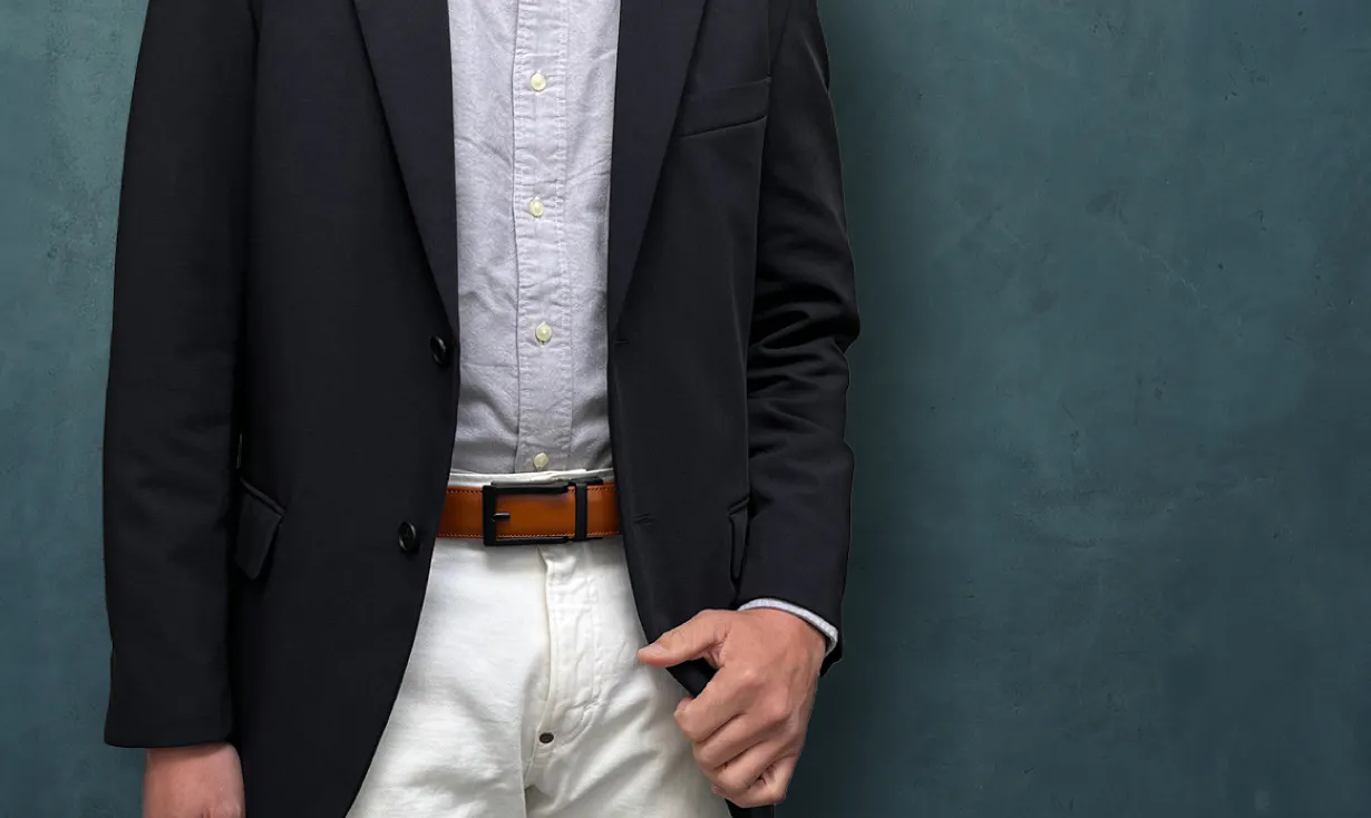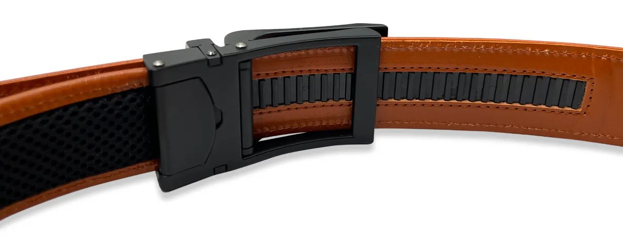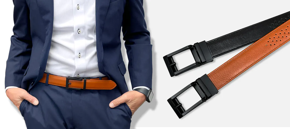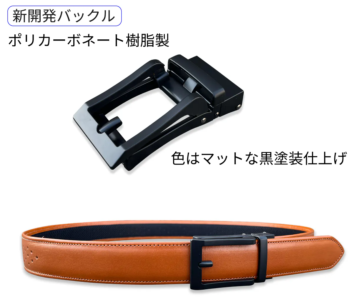 新開発の超軽量・ジャストフィットができるバックル。食後や座った時の息苦しさを一瞬で解消できます!