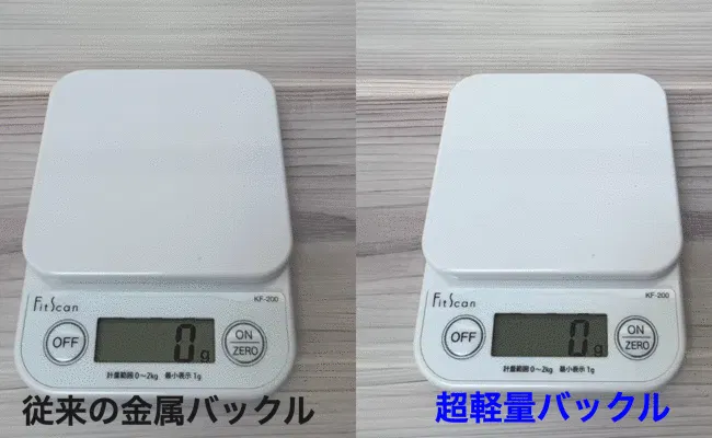 従来の金属製バックルに比べ、約69%もの重量をカットする事ができました!