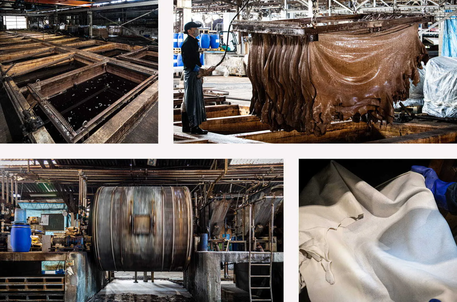 化学原料を使わず植物タンニンのみでじっくりと製造された革は大変高価で、フルベジタブルタンニンレザーとも呼ばれ、革ならではの表情や、使う人によって異なる風合いの変化が楽しるのが特徴です。