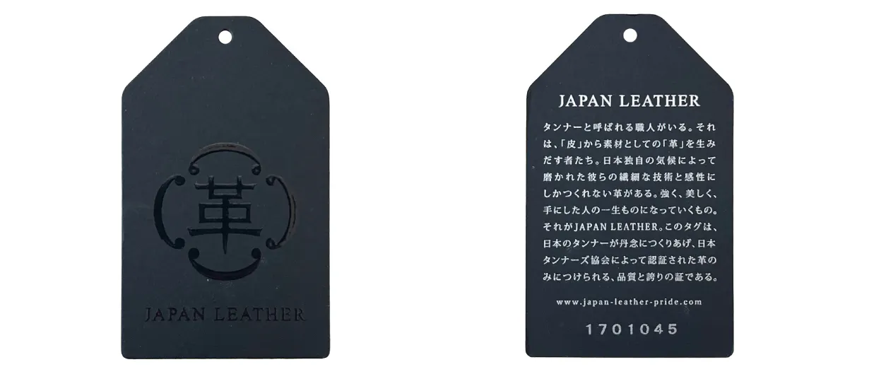 日本のタンナーが丹念につくりあげ日本タンナーズ協会によって認証された革のみにつけられる品質と誇りの証である『Japan Leather(ジャパンレザー)』タグがつきます。