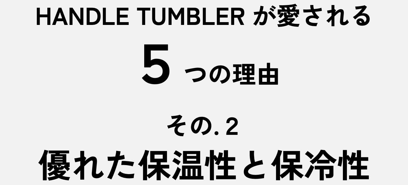 - HANDLE TUMBLERは保温、保冷力の高いステンレスの二重真空断熱構造。外びんと内びんの間を真空状態にすることで、対流による放熱を防ぎます。