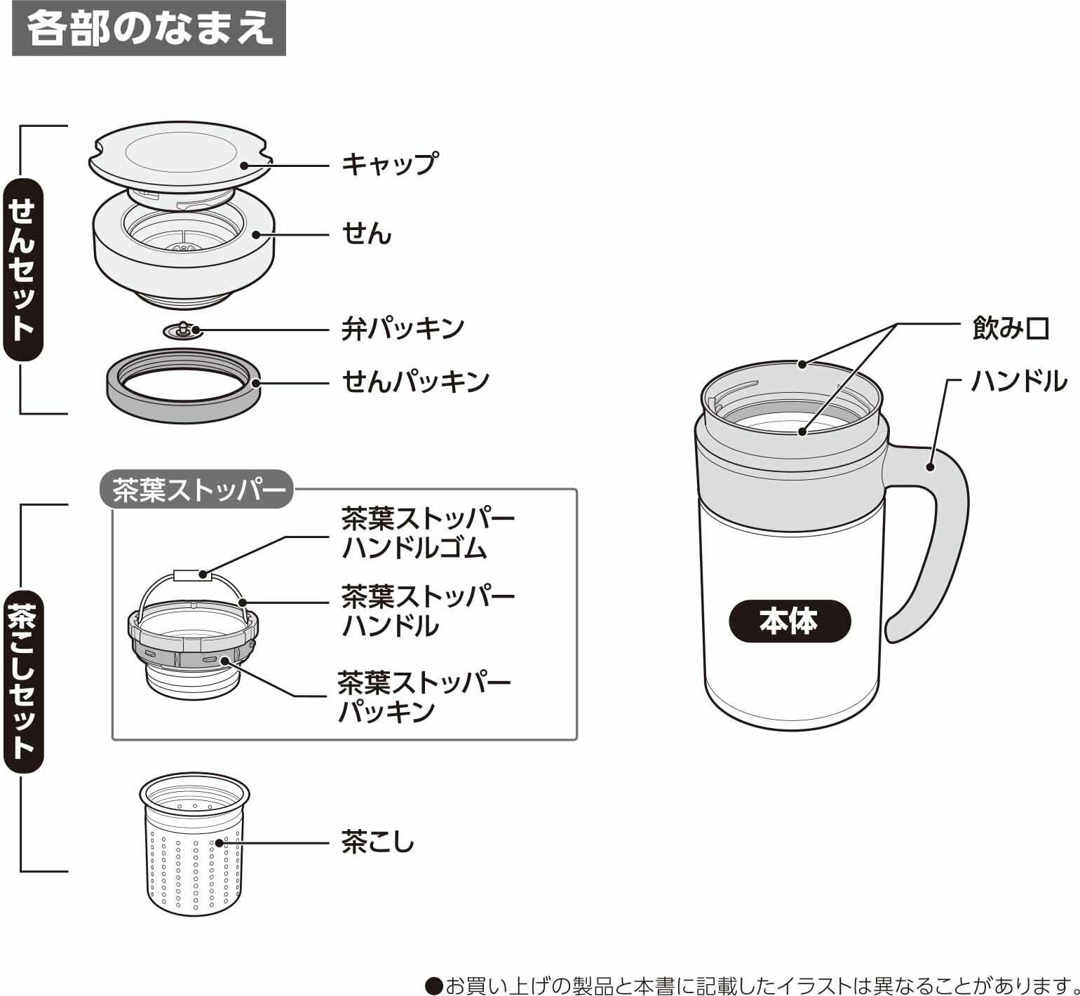 ・熱い飲み物を入れたときは横転させないように注意してください。