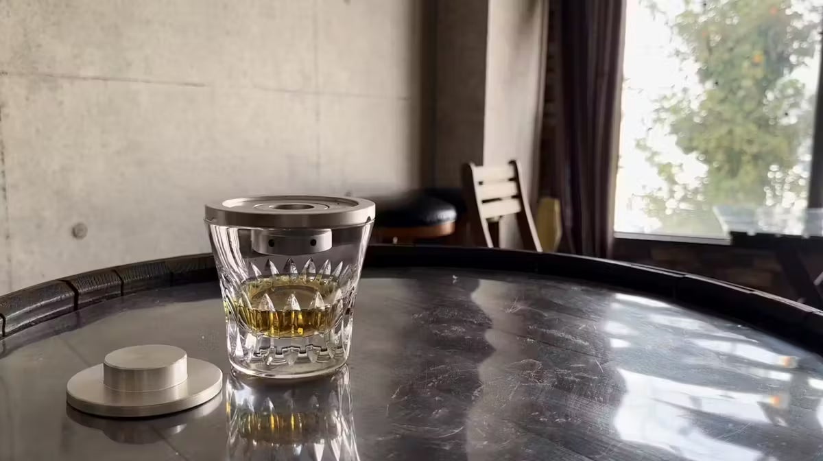 試作中はステンレススチールで作成してみたものの、グラスが割れそうになるほど重く、また通常のアルミニウムだと軽いですが、傷がつきやすいという特徴がありました。