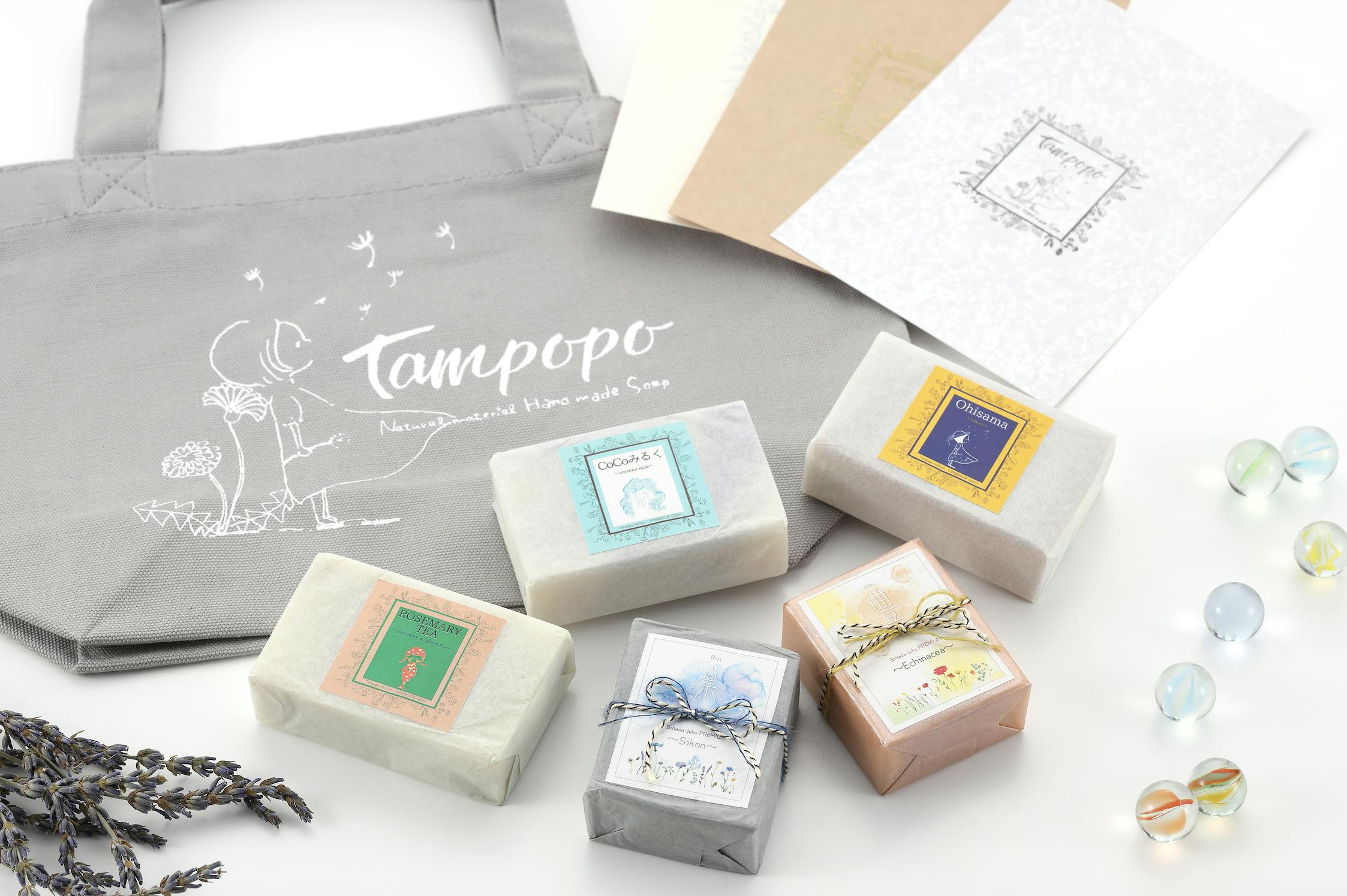 ・たんぽぽ石鹸全種類(5種類セット)+トートバッグ+ポストカード(3枚)