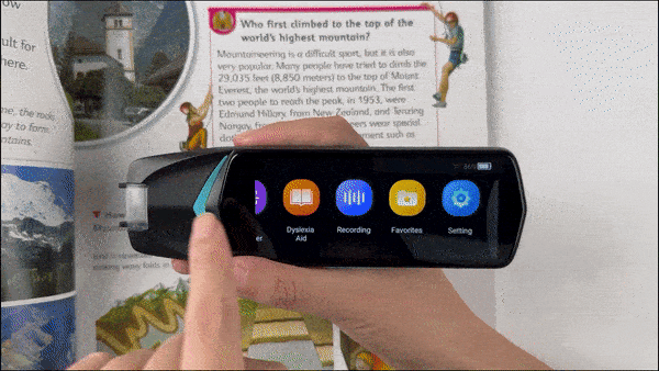 スキャンペンは高フレームレートのプロ仕様スキャナーを搭載しており、印刷面のテキストを1分あたり3000文字の速度で認識し、0.5秒以内に98%の精度で選択した言語へ翻訳できます。教科書や資料中に知らない単語やフレーズを発見したら、それをスキャンしてすぐに意味を確認したり、読み取った文章を再生して発音をチェックしたりできます。