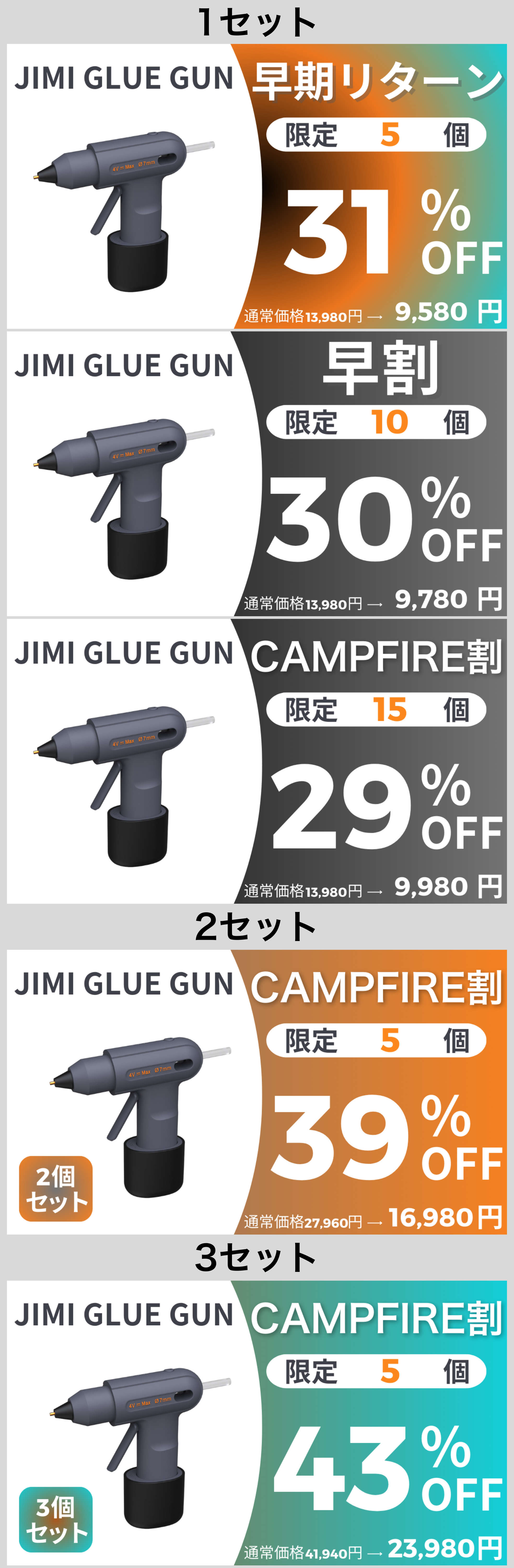 みなさん、こんにちは。BRIGHT DIYです。本日は皆さまに新しいプロジェクトを紹介させて頂きます。最大43%OFF!!!さらに、公開から5日間限定で使える15%OFFクーポンを発行させて頂きました。━━━━━━━━━━━━━━━━━━クーポンのURLはこちら↓https://camp-fire.jp/projects/814601/view?ctoken=FbK1juFQvCgkUzYiクーポンは3月30日~4月3日限定でご使用頂けます。━━━━━━━━━━━━━━━━━━DIY好きのみなさん、金属まで穴あけができる精密ドリルはお持ちですか?木材から金属まで自由自在に加工ができて、穴あけ精度も高いコードレスミニルーター「BOLTZ」です!プロジェクト概要キャンペーン期間 2025年3月30日~2025年5月10日プラットフォーム CAMPFIREキャンペーンURL https://camp-fire.jp/projects/view/814601※プロジェクト公開後から閲覧可能になります。2025年3月30日の8時からプロジェクト公開となります。数に限りがございますので、早い者勝ちです!!!BOLTZ DIY TOOL KIT 1点のご支援の場合は先着80名様に限り20%OFFの早期リターンを適用させて頂きます!※早期リターンは在庫がなくなり次第終了となります。BOLTZ DIY TOOL KIT (基本セット):BOLTZ DIY TOOL ADVANCED KIT (アドバンスセット): もっと見る