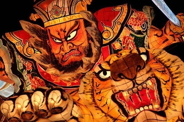 青森県の代表的なお祭りの一つ、「青森ねぶた祭」で興行するのと同じく、本場のねぶた師が製作した「ねぶた」。