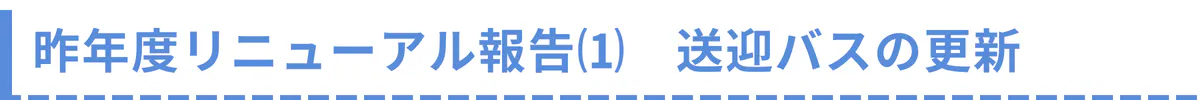 20年以上使ってきた送迎用の園バスを新しい車両にリニューアルしました。時々動かなくなったり、エアコンの効かなくなるなど故障が多発。修理部品の供給もままならなくなっていたため、新しいバスの導入は急務事項でした。
