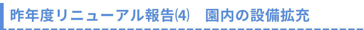 このうち9割方は昨年度に工事を完了。昨年からの繰越となった「園庭の大型遊具の入れ替え」を今年夏に実施する予定です。