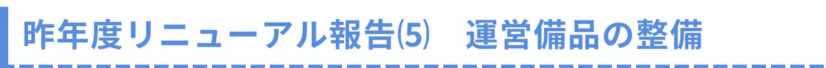 園児達がより楽しく過ごせるように、そして、働く職員達も快適に働き続けられるように、細々とした備品類のリニューアルも実施して良かったと感じています。