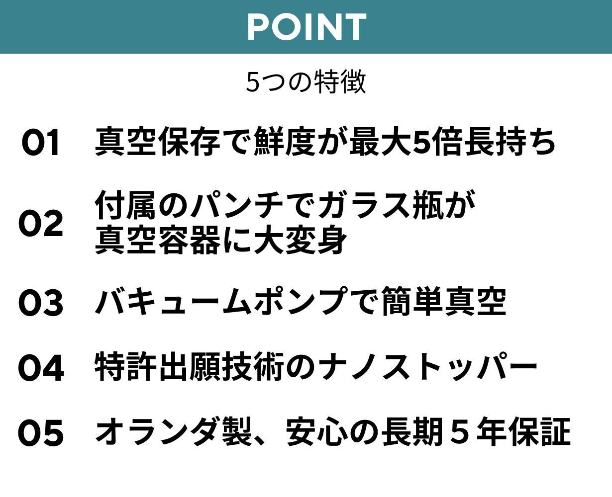 自分で容器をカスタマイズすればコーヒー豆、ワイン、野菜など何でも真空保存できる汎用性の高さが魅力です。