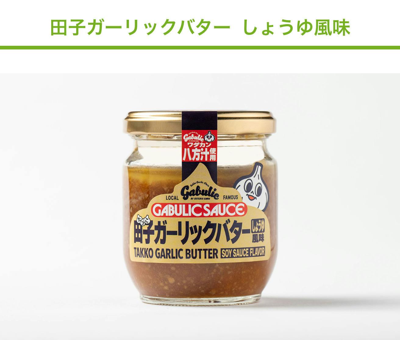 お店で超人気「GBSソース」を瓶詰にした「田子ガーリックバターソース しょうゆ風味」のほか、「田子ガーリックマヨネーズ」、「田子ガーリック味噌バター」の3種類をラインアップ。
