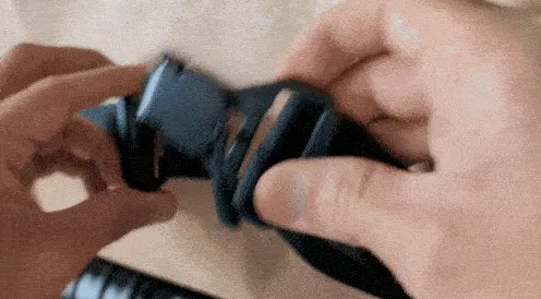 少し余ったベルトが、通しゴムから抜けてダラダラしないように、バチッと止めることもできます。