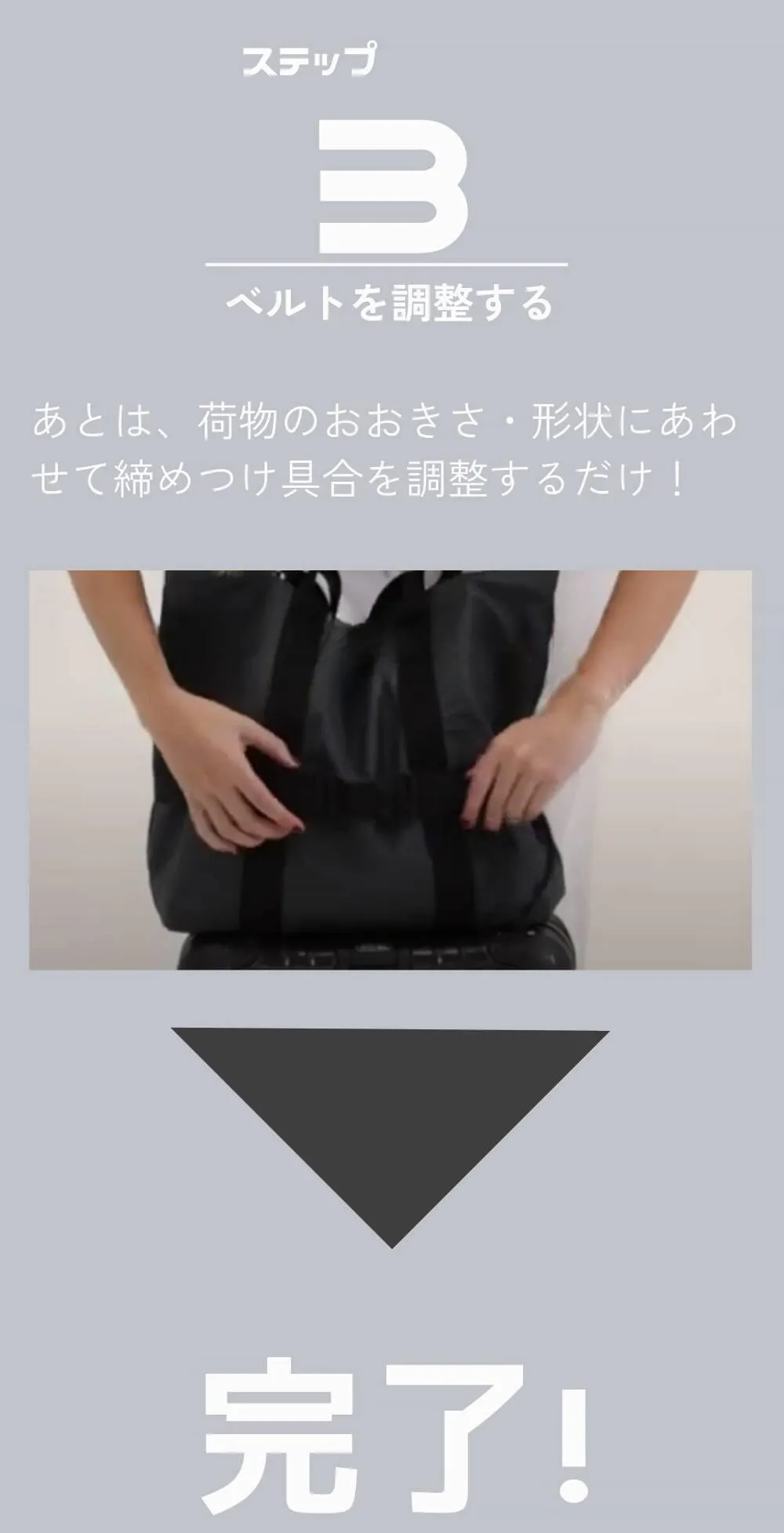 荷物にあわせて、締めつけ具合の微調整もOK。