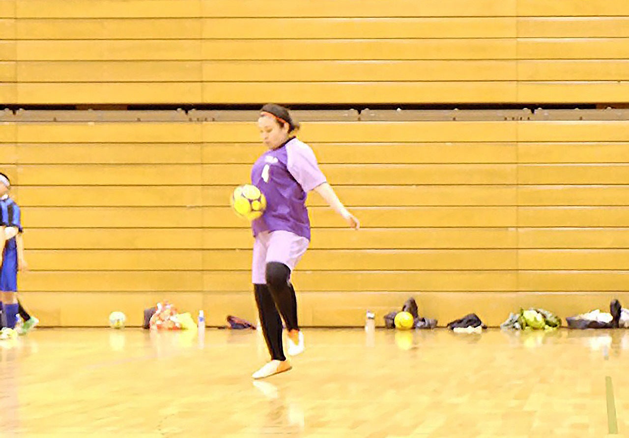 高校にサッカー推薦で入るも、発症してサッカーができなくなり、週2回通院します。高校卒業後に結婚し、夫に「サッカーとフットサルは違うよ」と誘ってもらい、個人参加型フットサル(個サル)に行くようになります。その後、二児の母に。
