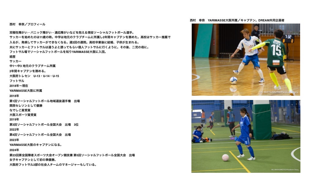 そして、少し時間はさかのぼり、もう一人、ソーシャルフットボールに出会っていた選手がいます。共同企画者の西村幸奈さんです。双極性障がい・パニック障がい・適応障がいなどを抱える選手です。